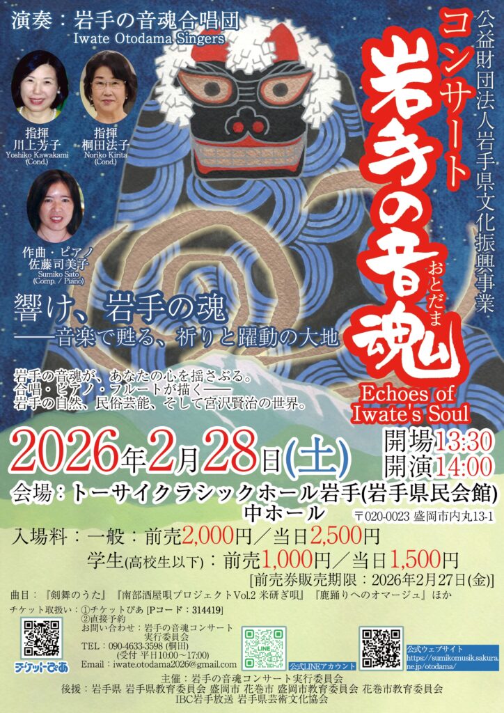 or Iwate Otodama Concert Executive Committee (Kirita) TEL 090-4633-3598,